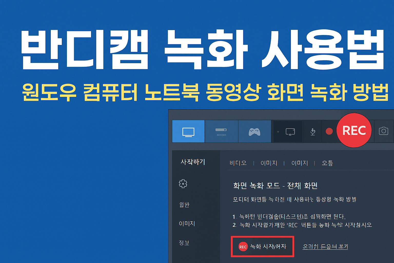 반디캠 녹화 사용법 - 윈도우 컴퓨터 노트북 동영상 화면 녹화 방법