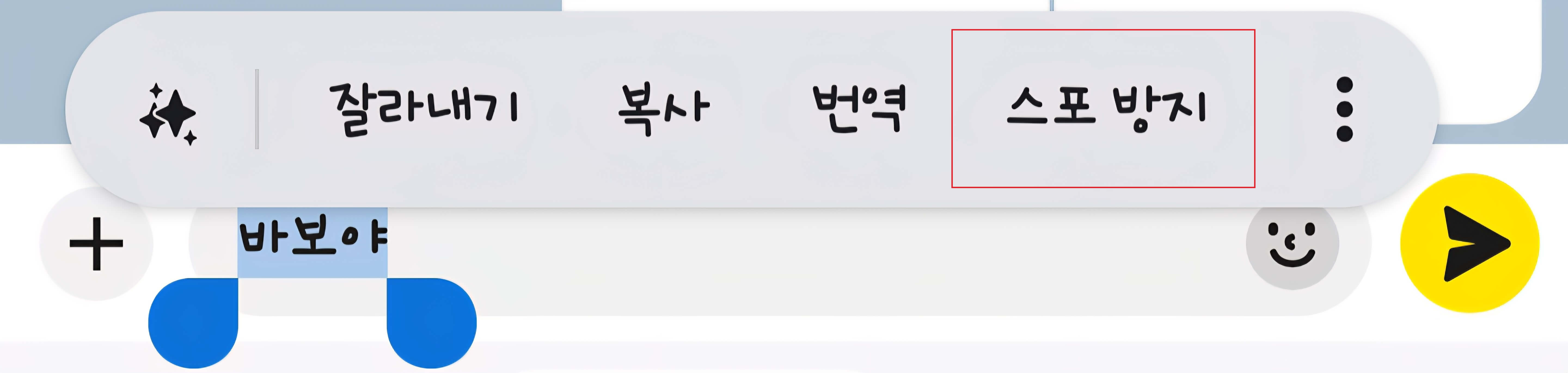 - 3단계: 표시되는 옵션 중 '스포방지'를 선택하면 해당 부분이 모자이크 처리됩니다.
