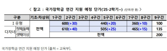 다자녀 국가장학금도 인상되었습니다.